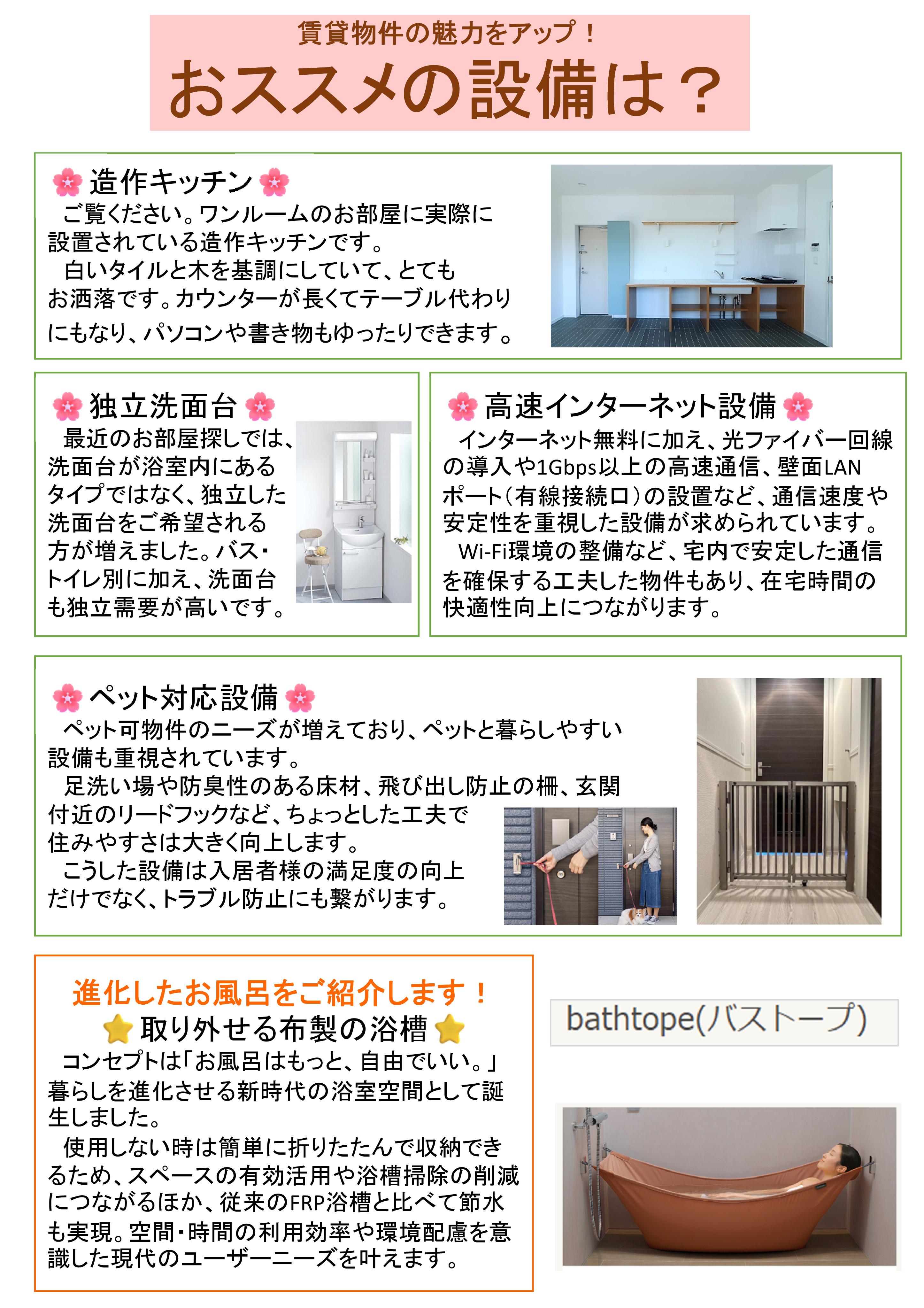 | 2020.4.2◎ | 新型コロナウイルス感染予防のため、 事務所内及び接客スペースの机・椅子などは都度消毒しております。 また、内見の際は、お客様にも、 消毒液による手の消毒にご協力をいただております。 |